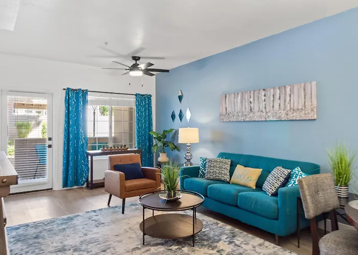Questo alloggio ha una cucina completamente attrezzata con comfort come una lavastoviglie e un forno. Il 2Br Scottsdale Condo With Pool & Gym - H1059 ha una posizione conveniente a 33 minuti d'auto dall'aeroporto Internazionale di Phoenix-Sky Harbor.